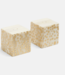 Dermott salt-and-pepper shakers are elegantly enwrapped in bone with either spotted gold or spotted silver.