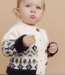 Intricate fair isle knit design, featuring our Navy, Bowie Grey, Moss and Cream colors.