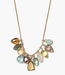 Gold necklace featuring a soft hued palette of hand-cut gemstones including labradorite, citrine, aquamarine, and quartz on delicate chain.