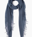 This handmade silk/cashmere blend in Black or Blue colorway. Fringe trim along the edge. Super soft and lightweight, this scarf is perfect for year-round wear.