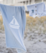 A timeless treasure, this Parisian blue cable-knit blanket features a classic white sailboat motif for a touch of nautical elegance. Beautifully crafted for softness and warmth, it's a stunning keepsake for little sailors.