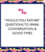 Thought-provoking and highly entertaining, the options on these 140 you-choose game cards range from deeply thoughtful to downright silly.