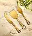 Rattan-wrapped handles make these knives an earthy yet sophisticated way to prepare and serve cheeses at any get-together. Matte Silver finish stainless steel blades. Well-designed cheese set features an easy-to-grip ergonomic handle.