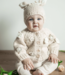 This Natural hued cardigan features hand-knit detailing and natural wood buttons. Not only is it adorned with beautiful crocheted flowers, but the raglan sleeves also have cable knit accents. Add our matching Flower Bunny Beanie for a cute and cozy look.