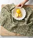 These block printed cotton tea towels display creativity and craftsmanship in every detail. Handmade from double-gauze crinkle cotton with traditional block-printed pattern and over-lock embroidered edges, they infuse the kitchen with artisanal charm while providing practicality for everyday use. Machine Washable.