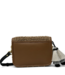 Don't underestimate this pretty little package! Buttery toffee colored leather body and brass studded edging. An intricate natural fiber raffia front flap with a magnetic solid brass snap closure. A playful 3-tier double horse hair tassel.