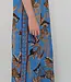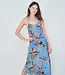 Crafted from fluid natural crepe viscose, this long dress features a V-neckline, thin adjustable straps, a side slit at the hem, and delicate palm trims running along both sides.