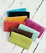 This wallet features a simple yet elegant clutch style with a full flap secured by a magnetic snap closure for easy access.