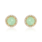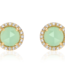 5.0mm stud earrings in 14k gold with a rose cut chrysoprase center and a halo of diamonds on each stud.