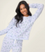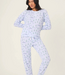 The ultimate après ski uniform—this tree-print pajama set is made for cozy nights in after a day on the slopes. Crafted from brushed thermal with the perfect touch of stretch, the long-sleeve henley top and jogger pants feature a snowy periwinkle backdrop sprinkled with evergreen trees, mountain peaks, and crescent moons.