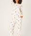 Raise a toast to cozy season in this ivory pajama set, scattered with festive champagne glasses. Cut in our peachy jersey, it features a crewneck long sleeve top and relaxed straight-leg pants with a drawstring waist—an instant holiday favorite for cozy nights in and festive mornings alike.