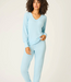 Sometimes the simplest pieces are the ones you reach for most. This lounge set is crafted from soft, textured waffle knit and includes a long-sleeve V-neck top with ribbed cuffs, paired with jogger-style pants featuring a faux button fly and banded hems.