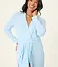 Sometimes the simplest pieces are the ones you reach for most. This ribbed lounge robe is crafted from soft cotton-blend jersey with a relaxed silhouette, open front, and self-tie waist. The sky-blue hue feels fresh and serene—perfect for layering over your matching set, sipping coffee, or winding down after a long day.
