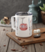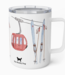 These 12oz skiing insulated mugs feature original art and is the perfect travelling companion! The durable stainless steel body and double wall construction for added toughness keeps your favorite beverage hot or cold for hours. This mug boasts a lovely glossy finish and clear acrylic snap-on leak-proof slide lid. We handwashing recommended.